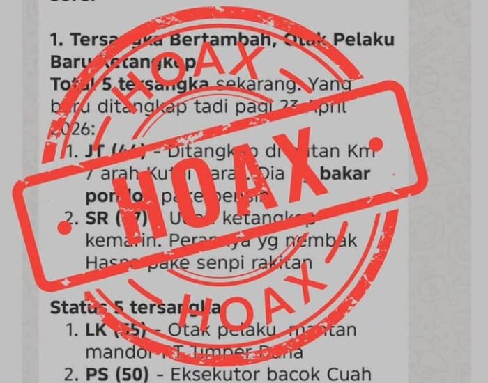 Informasi yang beredar sebelumnya memuat sejumlah klaim terkait penambahan tersangka, motif, hingga kondisi korban yang disebut-sebut sebagai perkembangan terbaru kasus. Namun, pihak kepolisian menegaskan bahwa seluruh isi pesan tersebut tidak berasal dari sumber resmi.